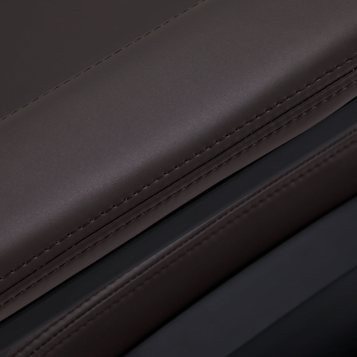 La solida costruzione della base garantisce la stabilità e la durata del mobile. L'imbottitura piacevole al tatto in pelle sintetica nelle tonalità del marrone è esteticamente gradevole, resistente all'umidità e facile da pulire. Tutti questi elementi si combinano per creare un mobile che non solo svolge perfettamente la sua funzione, ma aggiunge anche eleganza e professionalità al salone.
