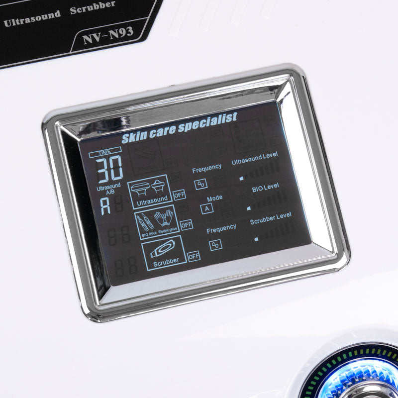Skin scrubber - peeling cavitazionale (Ultrasonic peeling) è un nuovo sistema per la cura profonda della pelle e la sua rigenerazione senza effetti collaterali. Questo trattamento consiste nella pulizia della pelle attraverso onde ultrasuoni, permettendo quindi una rimozione accurata dell'eccesso di sebo da pori e follicoli piliferi, eliminando l'epidermide cheratinizzata, punti neri, comedoni e batteri. Il peeling cavitazionale agisce sulla pelle delicatamente tramite vibrazioni piacevoli e naturali senza l'uso di corrente elettrica. L'uso di questo dispositivo consente una profonda rigenerazione della pelle attraverso un rapido ed efficace rinnovamento e pulizia in profondità, con il risultato di una pelle visibilmente rinnovata e fresca. È un trattamento indolore generalmente percepito come piacevole. La cavitazione agisce positivamente anche sugli strati più profondi dell'epidermide, rappresentando un eccellente preparativo per ulteriori trattamenti cosmetici (esfoliazione con acidi e/o sonoforese e ionoforesi e altri).