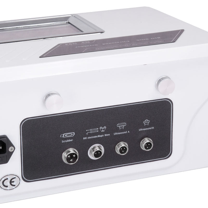 Funzione ultrasuoni. Utilizzo di vibrazioni ultrasuoni con frequenza di un milione di oscillazioni al secondo (1,5 MHz). L'onda ultrasuoni stimola il tessuto e migliora la permeabilità delle membrane per il collagene, levigando le rughe, eliminando le linee e tonificando la pelle, donandole un aspetto più giovane e sano. Gli ultrasuoni generano calore derivante dall'attrito, che migliora la circolazione sanguigna, rilassa i muscoli e aiuta a rompere la cellulite, eliminando l'eccesso di grasso. Il dispositivo con 2 sonde consente un lifting non invasivo, leviga e rinforza la pelle utilizzando vibrazioni ultrasuoni.