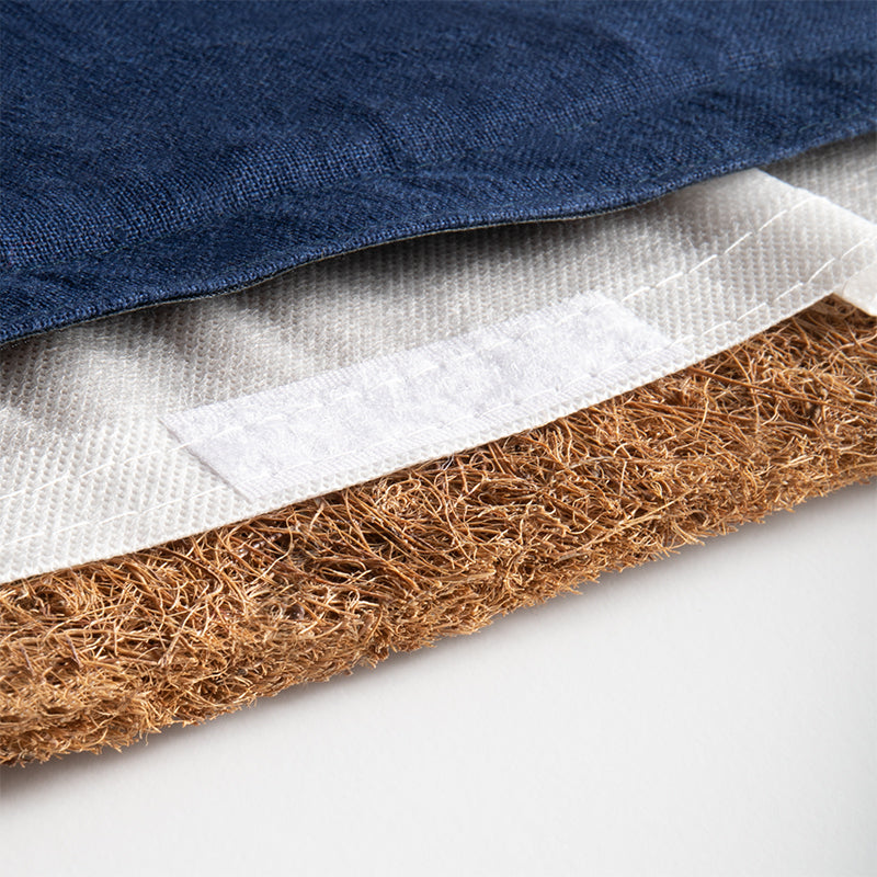 il tappetino è realizzato con materiali di alta qualità, tutti gli elementi utilizzati sono anallergici. la copertura del tappetino è in lino 100% naturale di alta qualità, all'interno del tappetino c'è un inserto spesso fatto di fibra naturale di cocco, grazie al quale il tappetino è naturale ed ecologico. la fibra è rivestita in lattice, quindi non assorbe l'umidità e il cuscinetto rimane igienico.