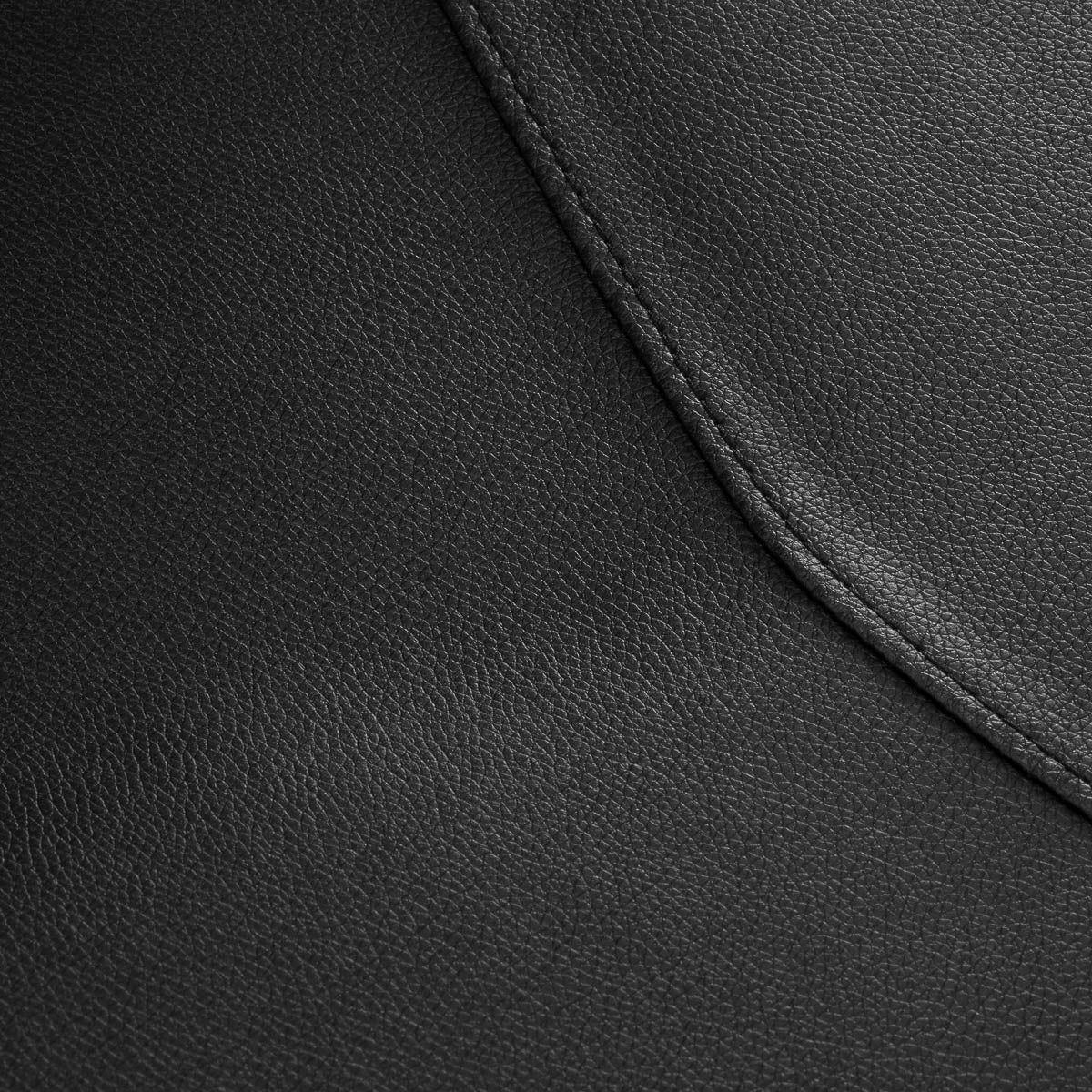 Il corpo resistente e la pelle sintetica in tonalità di nero garantiscono resistenza all'umidità, solidità e durata. La base rotonda in tonalità di nero garantisce stabilità e durata. Lo schienale superiore aerodinamico aggiunge una leggerezza visiva, enfatizzando il carattere moderno della sedia, mentre i dettagli meticolosi dimostrano l'alta qualità della lavorazione artigianale. Il colore nero minimalista combinato con cuciture estetiche fa sì che la sedia si integri perfettamente con vari stili di interni di saloni, aggiungendo un tocco elegante e moderno.