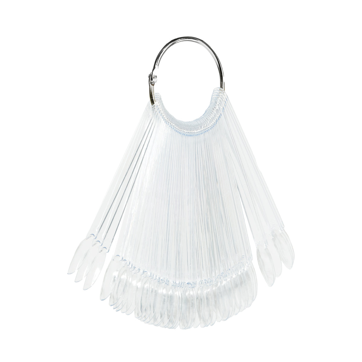 Il campione trasparente consente una presentazione estetica di tutti i colori di smalti classici e ibridi o gel. È composto da 50 punte individuali di forma ovale e di una dimensione corrispondente alle unghie reali. È fissato con una pratica ruota staccabile, che rende facile conservare il tutto. Ogni punta è realizzata in plastica resistente.