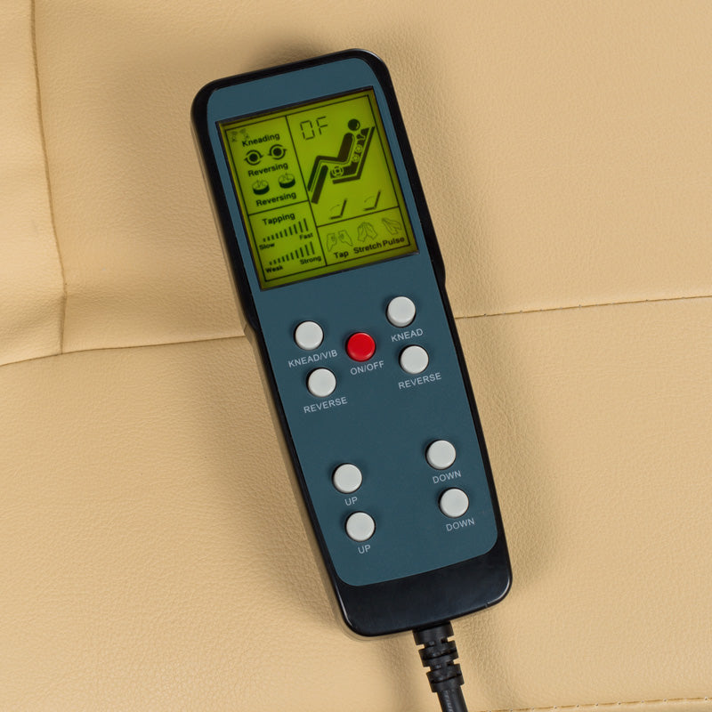 Poltrona dotata di sistema di massaggio a rulli e a pressione.