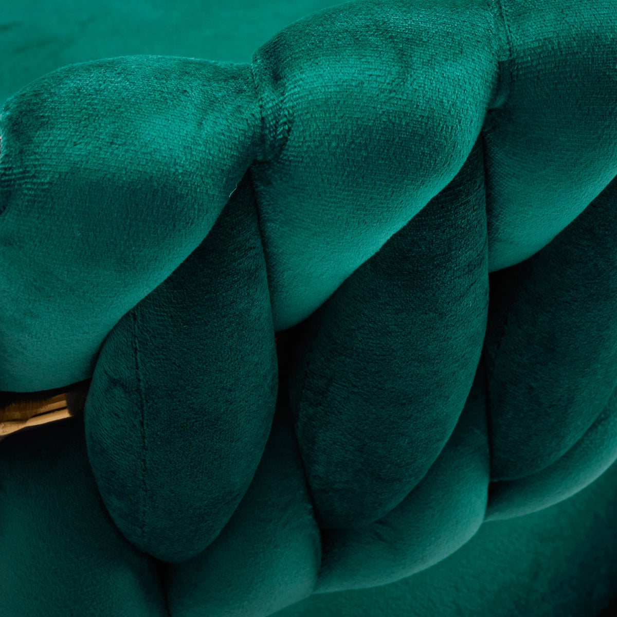 La finitura rende il mobile accattivante. L'imbottitura in velluto, piacevole al tatto, nelle tonalità del verde gli conferisce un carattere unico. La base nelle tonalità dell'oro aggiunge eleganza, abbinandosi perfettamente al velluto. Le ruote funzionali offrono mobilità, facilitando lo spostamento della sedia e il movimento nel salone durante il lavoro. La lavorazione accurata, il comfort d'uso e il materiale esteticamente intrecciato sullo schienale profilato fanno sì che la sedia soddisfi le esigenze anche degli utenti più esigenti.