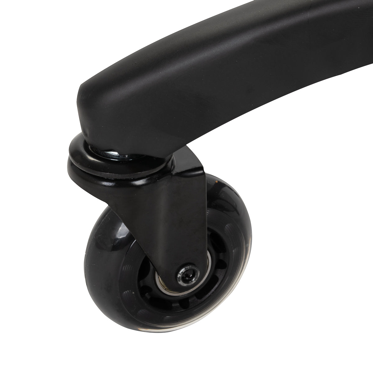 La regolazione dell'altezza del sedile nell'intervallo 56-77 cm consente allo specialista di adattare la propria posizione durante l'esecuzione dei servizi. Il sedile a sella, imbottito con schiuma resistente alla deformazione, garantisce comfort ed ergonomia. Il meccanismo di rotazione completa rende il lavoro più efficiente e comodo. La mobilità è assicurata dalle ruote Roll Speed con nucleo in ferro e rivestimento in poliuretano (PU), che combinano un movimento fluido con un'eccezionale resistenza all'usura. L'uso di cuscinetti ABEC-7 rende lo sgabello facile da spostare, significativamente più semplice da manovrare.