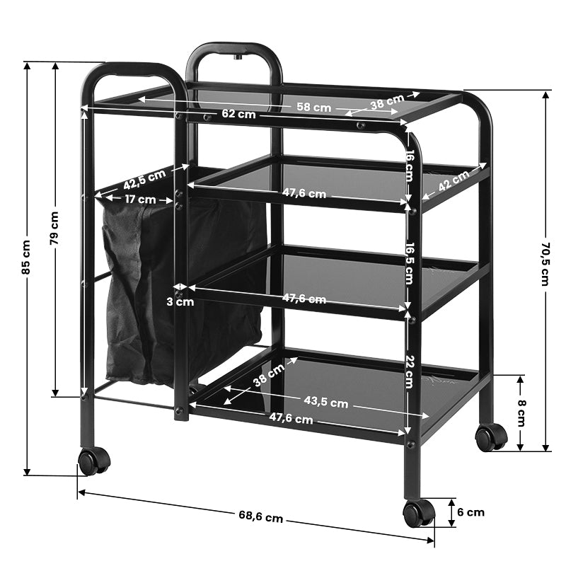 - dimensioni del ripiano superiore: lunghezza 62 cm, larghezza 42 cm
