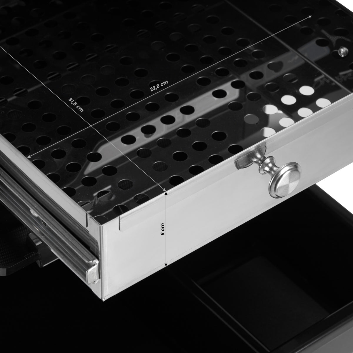 Il professionale aiutante del parrucchiere Gabbiano 68UV con sterilizzatore UV è un elemento estremamente utile dell'attrezzatura del salone di bellezza che migliorerà il lavoro e permetterà di prendersi cura del giusto ordine e organizzazione del posto di lavoro. Grazie alla disposizione pratica dei prodotti, quelli più necessari saranno sempre a portata di mano. Il pannello posteriore incluso impedisce ai cassetti di essere tirati accidentalmente dall'altra parte, il che potrebbe causare danni agli utensili all'interno.