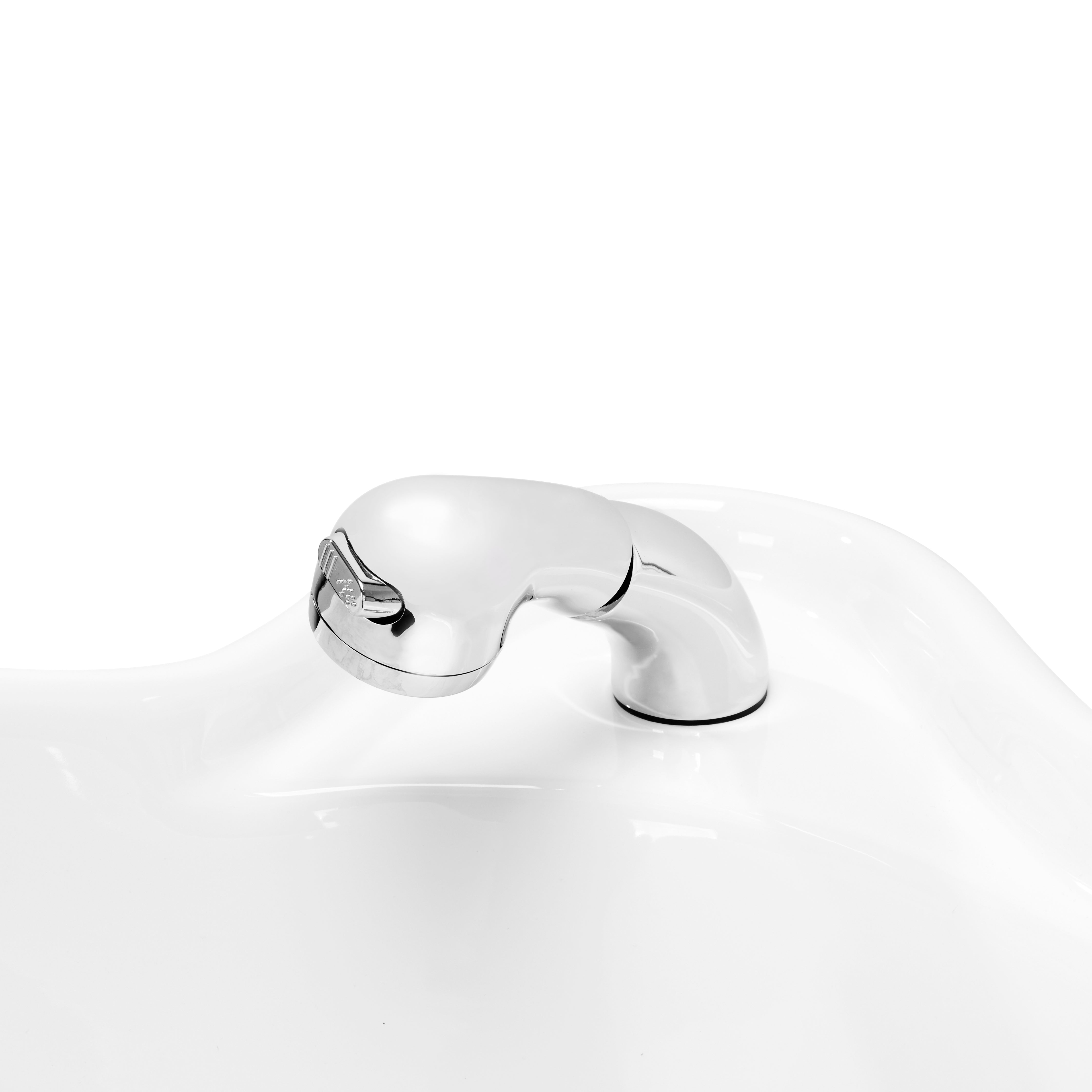 La profondità della ciotola del lavabo in ceramica in tonalità di bianco consente un'esecuzione comoda ed efficace di un'ampia gamma di servizi di parrucchiere, prevenendo schizzi eccessivi di acqua e prodotti utilizzati durante il trattamento. Il materiale impiegato rende il lavabo resistente, durevole, resistente allo scolorimento e ai graffi, e molto facile da mantenere pulito. Un colletto profilato correttamente garantisce comfort durante il lavaggio dei capelli. L'uso di un supporto speciale nella ciotola assicura un adeguato sostegno per la testa, in modo che il suo peso non gravi sul collo. La soluzione innovativa previene tensioni e fastidi nella zona del collo e assicura un alto comfort, anche durante trattamenti prolungati. Inoltre, grazie a un comodo rivestimento in plastica nera, il cliente non avvertirà il fastidio della fredda superficie in ceramica.