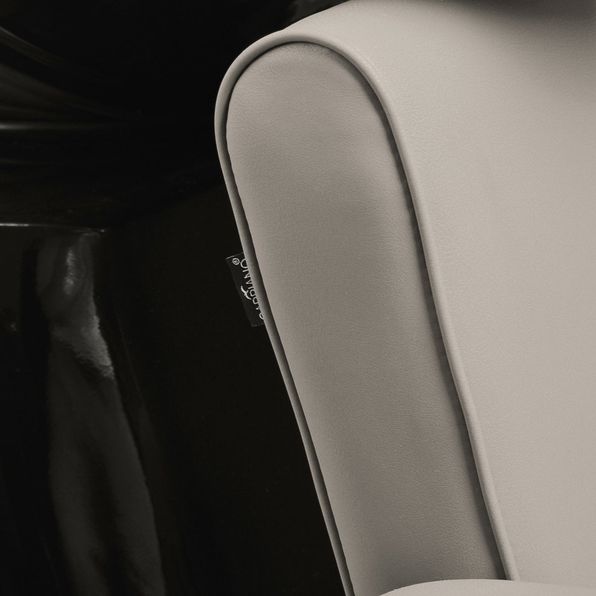 La forma geometrica della sedia con bordi dolcemente arrotondati combina semplicità e comfort in un design moderno. Il sedile quadrato e i braccioli leggermente inclinati creano un insieme armonioso, garantendo una posizione comoda durante i trattamenti. Lo schienale, con il suo angolo di inclinazione ottimale, supporta una postura corretta, permettendo un completo rilassamento. L'imbottitura in ecopelle grigia e beige di alta qualità è resistente e facile da pulire. La forma geometrica e moderna del mobile evidenzia il carattere elegante dell'unità di lavaggio e si integra perfettamente con l'arredamento del salone. Il set include un completo set di accessori con finitura nera opaca, comprendente rubinetto, soffione e tubi abbinati, garantendo un set completo di strumenti per il lavoro.