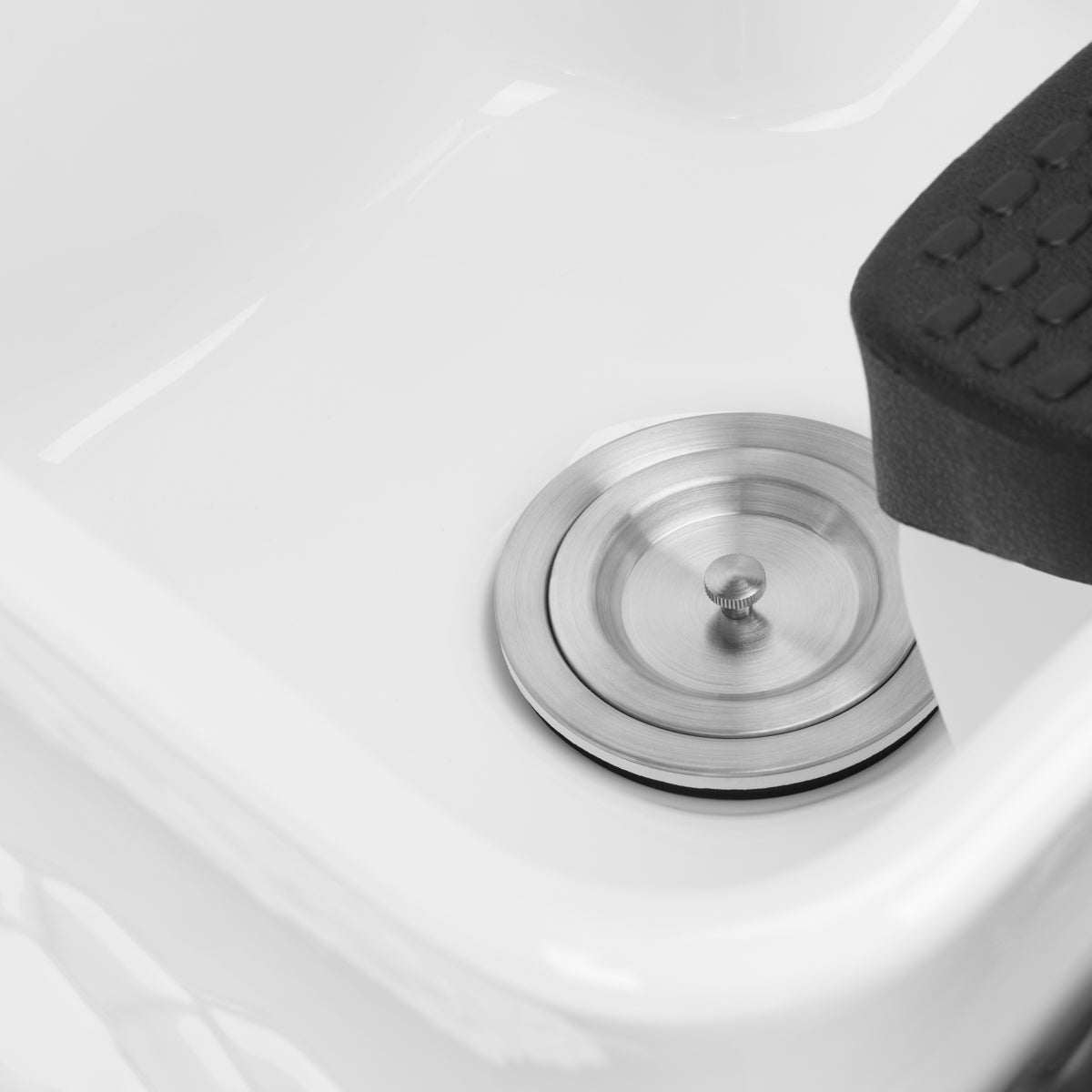Il moderno lavaggio auto per parrucchieri Gabbiano unisce funzionalità ed eleganza italiana. Il lavaggio auto è realizzato con materiali di altissima qualità e rifinito alla perfezione. Sappiamo quanto sia importante il comfort del cliente durante i trattamenti, motivo per cui il design speciale offre al cliente un solido supporto per la testa durante il lavaggio. Il sedile morbido ed estremamente confortevole è rivestito in ecopelle grigia di alta qualità. Il lavaggio auto ha una ciotola in ceramica bianca e braccioli dorati. Il pezzo d'arredamento perfetto per interni moderni.