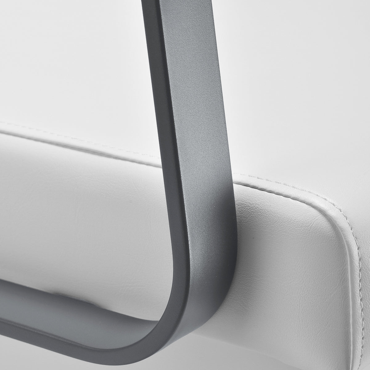 La sedia profilata fornisce un adeguato supporto lombare e, quindi, un alto comfort d'uso. I braccioli in metallo in tonalità di grigio con una forma geometrica permettono il corretto posizionamento delle spalle del cliente. L'imbottitura con schiuma resistente alla deformazione e la tappezzeria in similpelle piacevole al tatto in tonalità di bianco garantiscono la durata del mobile, la facilità di pulizia e un uso confortevole a lungo termine. L'aspetto originale ed elegante dell'unità lavaggio capelli conferisce all'interno un'espressione unica. Il set include accessori completi in tonalità di nero, compresi un rubinetto, una doccetta e tubi dedicati per fornire un set completo di strumenti per il lavoro.