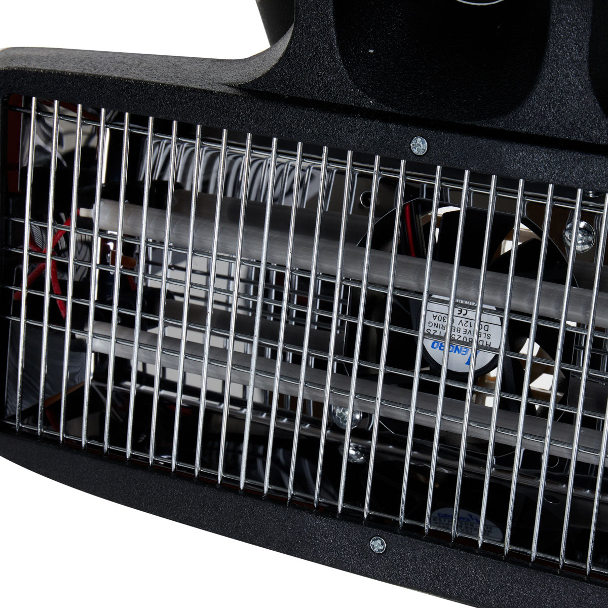 La copertura futuristica realizzata in plastica resistente nelle tonalità del bianco conferisce al dispositivo un aspetto moderno e unico, facendolo adattare alla maggior parte degli interni. La base dell'infrazona è un elemento a cinque braccia dotato di ruote che ne garantiscono la mobilità, e un treppiede regolabile nell'intervallo 135-176 cm, che assicura un funzionamento confortevole e adatta il dispositivo a diverse esigenze.