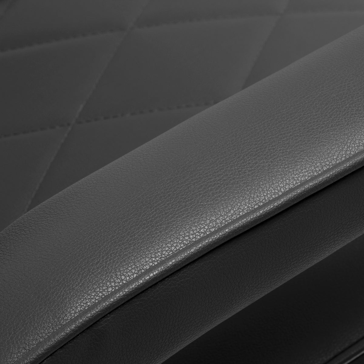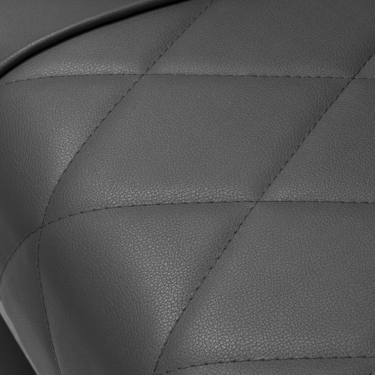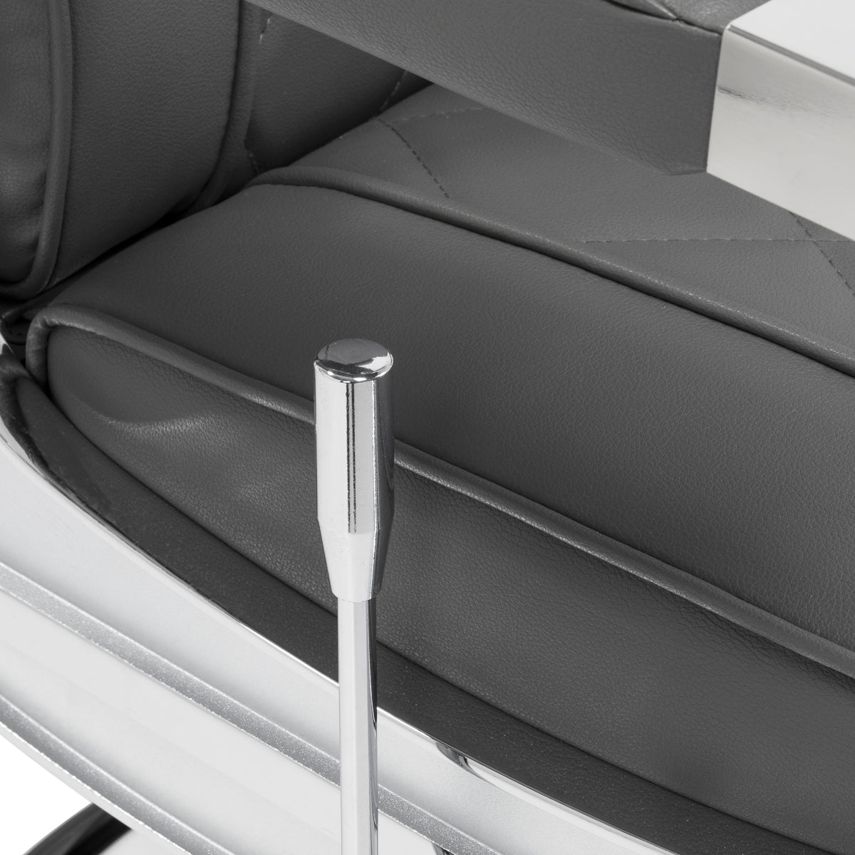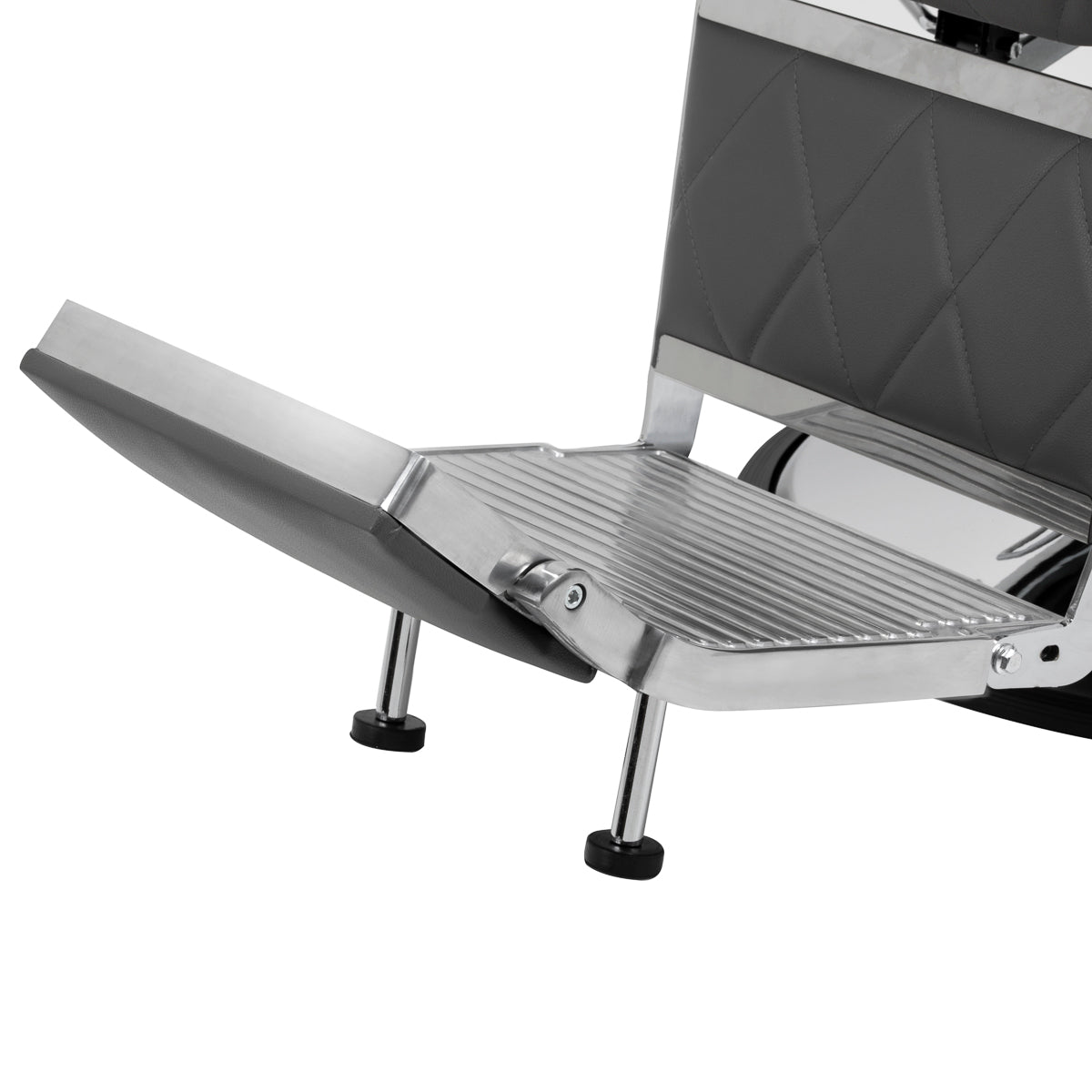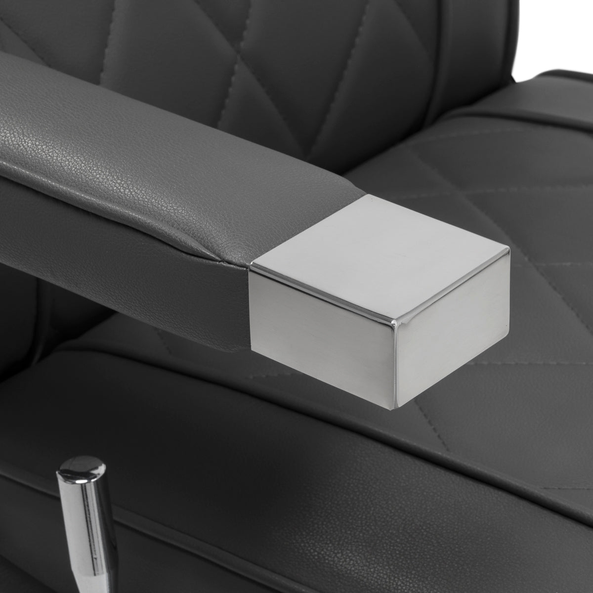 La solida costruzione della base rotonda della poltrona garantisce stabilità ed eccellente comfort per l'utente. L'imbottitura del sedile, realizzata in schiuma resistente alla deformazione, e la tappezzeria in pelle sintetica soft-touch con finitura opaca garantiscono durata e comfort a lungo termine. Le cuciture eleganti sulla tappezzeria aggiungono carattere, evocando ispirazioni dal design automobilistico che esaltano il suo aspetto elegante. Questa caratteristica rende anche la poltrona resistente all'umidità, durevole e facile da pulire. La tappezzeria in tonalità di grigio conferisce alla poltrona un carattere unico, e il suo stile minimalista le permette di integrarsi perfettamente con l'arredamento di qualsiasi barberia.