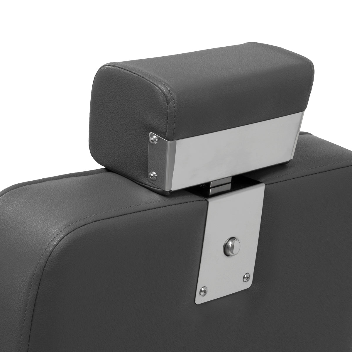 Il comodo sedile assicura il rilassamento del cliente durante vari trattamenti. Lo schienale ergonomico, che fornisce un eccellente supporto alla schiena, permette una posizione confortevole, particolarmente vantaggiosa per trattamenti più lunghi. L'inclusione di un meccanismo di rotazione completo rende il flusso di lavoro più efficiente e comodo. I braccioli imbottiti posizionati all'altezza ideale aiutano a allineare correttamente le spalle del cliente, prevenendo la postura curva e mantenendo una postura corretta.