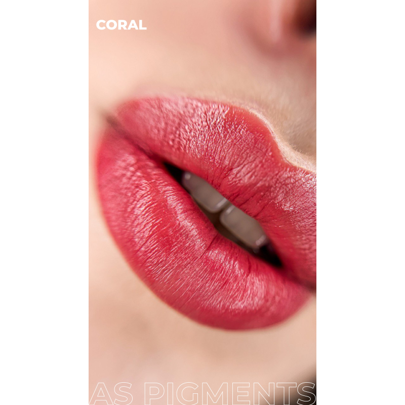 Concentrato rosa-arancio brillante. Perfetto per donne con capelli scuri, occhi verdi o lentiggini. Miscelabile con qualsiasi pigmento labbra tranne Juicy Peach. -