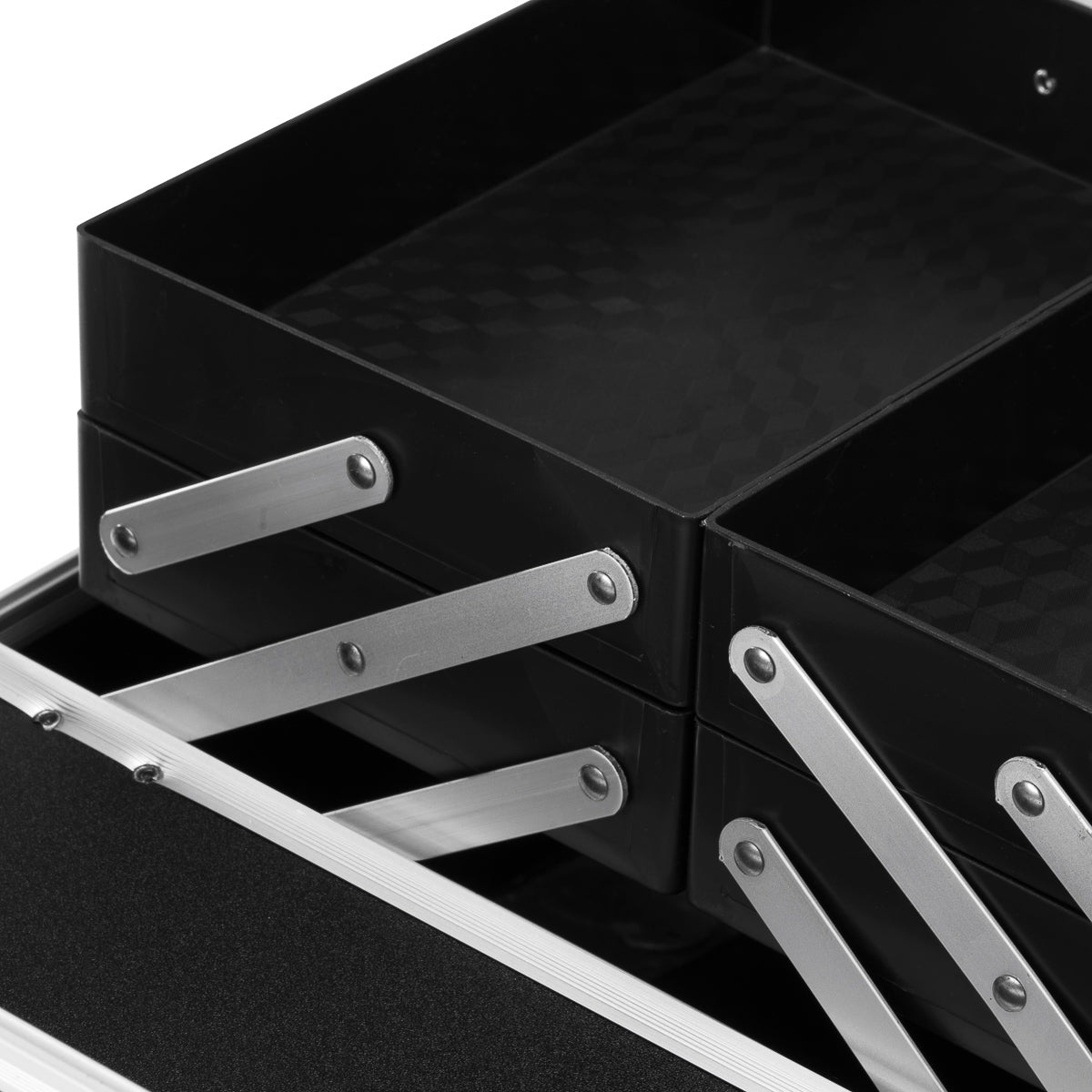 La elegante valigetta cosmetica 44 è una combinazione di funzionalità e stile, garantendo un'organizzazione comoda, una conservazione sicura e un rapido accesso agli strumenti essenziali. È perfetta per l'uso quotidiano, soprattutto per gli stilisti mobili. L'interno spazioso con ripiani estraibili consente di organizzare gli accessori, e la camera ampia può contenere una fresa per unghie, preparati o altri strumenti necessari.