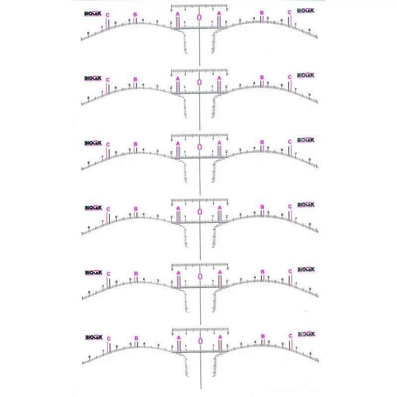 Perfetti sia per la fase preparatoria del disegno sia come controllo finale per verificare la simmetria, i Righelli Adesivi per Sopracciglia Biotek assicurano che ogni forma di sopracciglia sia equilibrata e perfettamente allineata. Le loro marcature chiare e facili da leggere rendono semplice misurare, delineare e ricontrollare il tuo design, offrendo risultati professionali con fiducia e costanza.