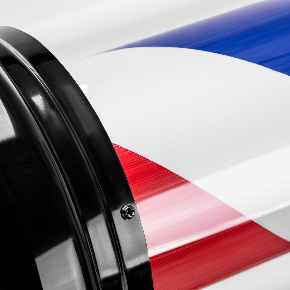 Una plafoniera illuminata accattivante, dotata di un cilindro rotante, è un'eccellente pubblicità per un barbiere. Il design distintivo, con elementi rotanti in rosso, bianco e blu, crea un biglietto da visita unico e internazionalmente riconosciuto del barbiere. Utilizzando il telecomando cablato, è possibile accendere sia l'illuminazione che la rotazione della plafoniera.