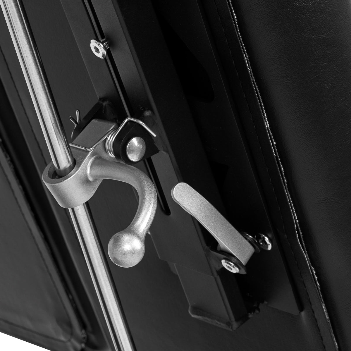 L'aspetto semplice e minimalista e i colori classici rendono la sedia perfetta per qualsiasi salone di tatuaggi, migliorando significativamente il comfort durante i servizi. La sedia funzionale facilita l'assunzione di una posizione comoda sia per la persona tatuata che per l'artista. L'imbottitura con schiuma resistente alla deformazione, la copertura in similpelle piacevole al tatto nelle tonalità del nero e una struttura metallica stabile garantiscono durata e facile pulizia dell'attrezzatura. La cucitura estetica e semplice le conferisce un carattere unico. Le ruote posizionate su una parte della base rendono molto più facile spostare il mobile.