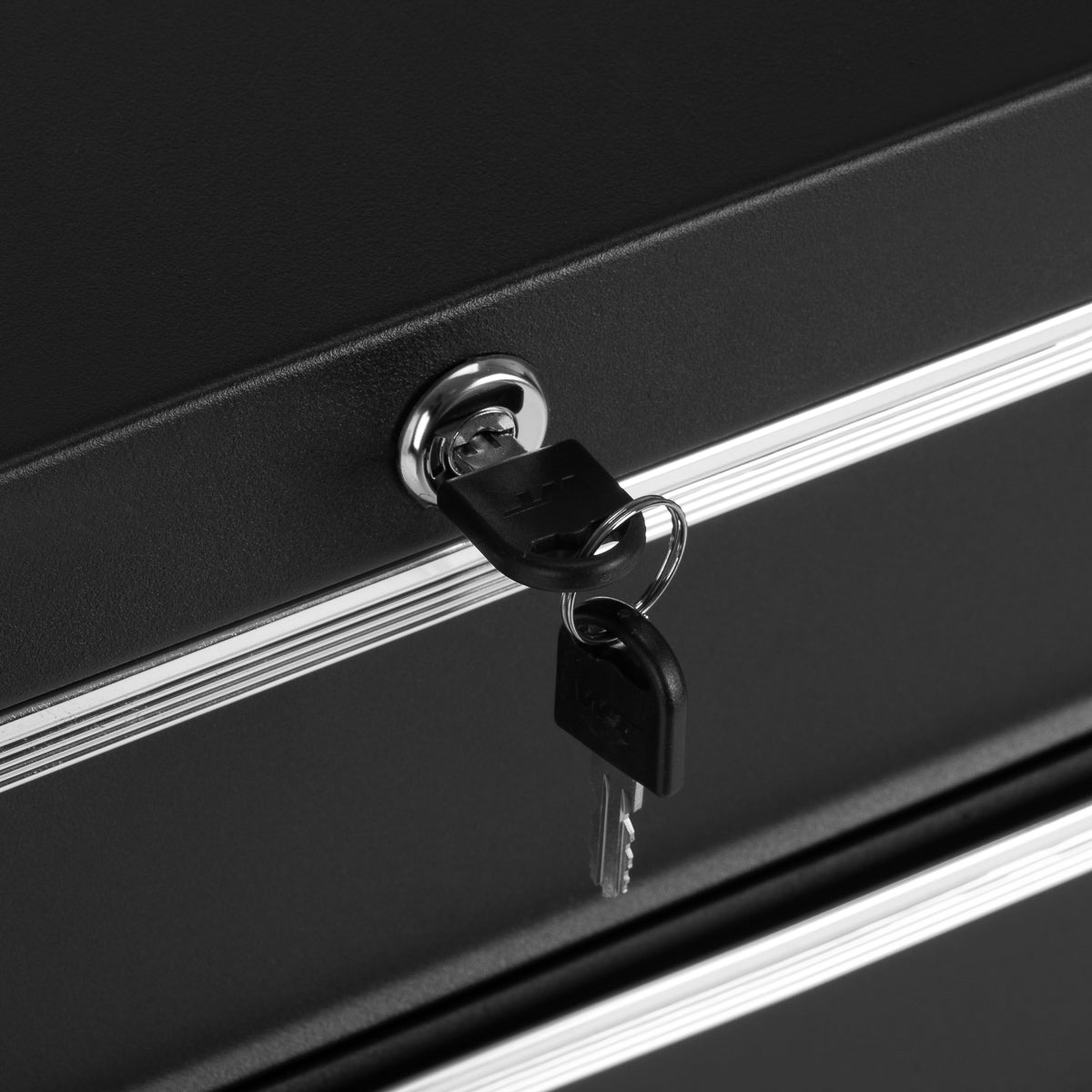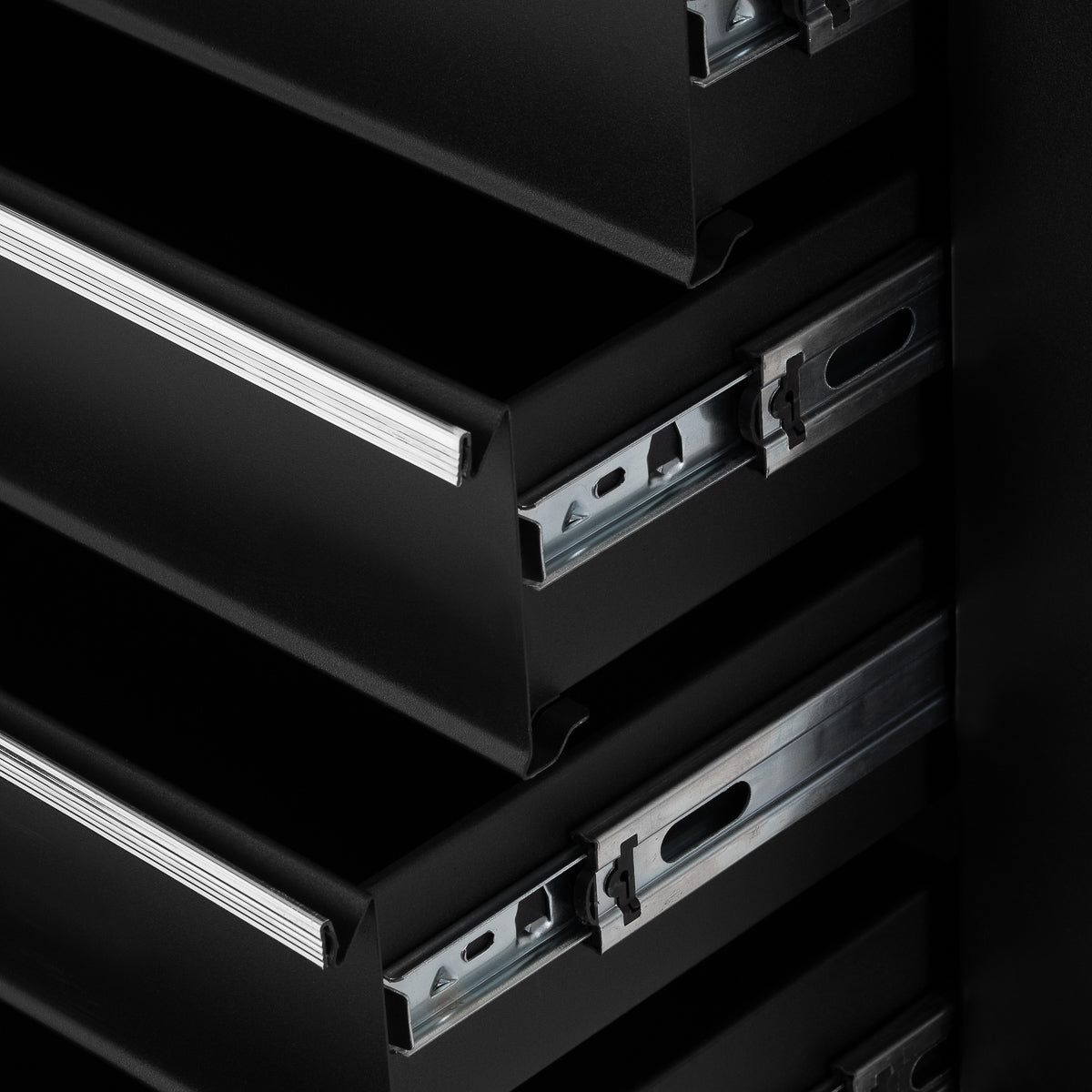 Il modello è dotato di cinque cassetti capienti, che offrono ampio spazio per gli strumenti necessari, prodotti per l'igiene e accessori usa e getta. La disposizione ben studiata favorisce l'ordine e la corretta organizzazione dell'area di lavoro. Una serratura a chiave impedisce che i cassetti vengano estratti in modo incontrollato e consente di conservare attrezzature più delicate o documentazione.