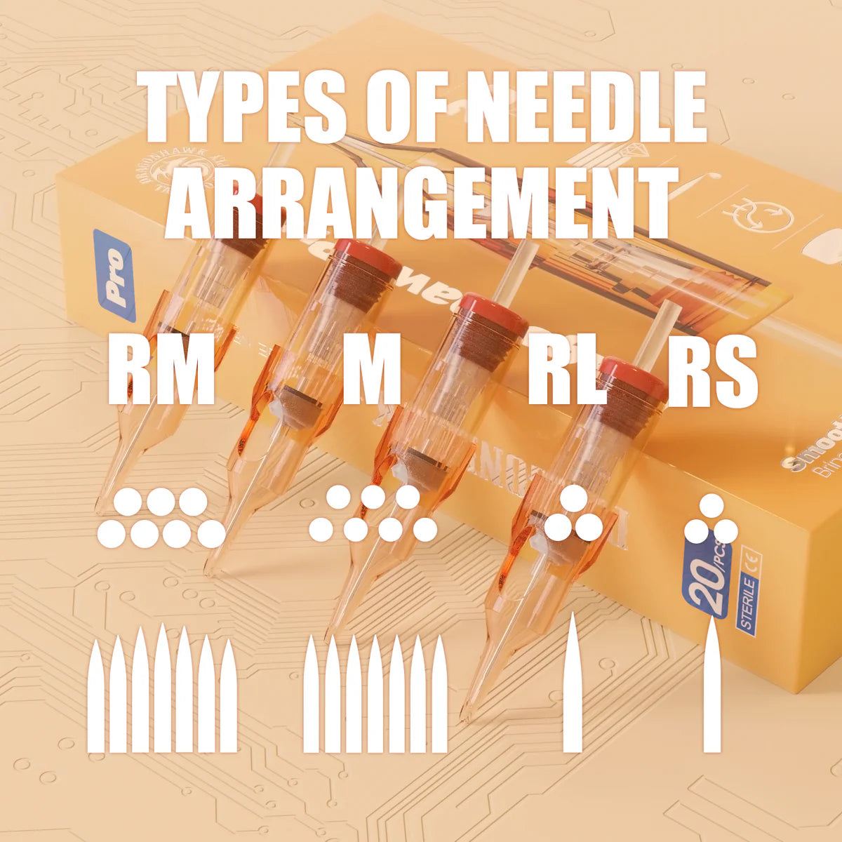 - Corpo cartuccia trasparente – Realizzato con plastica trasparente ad alta densità per durabilità e maggiore visibilità dell'ago, offrendo agli artisti un controllo superiore.