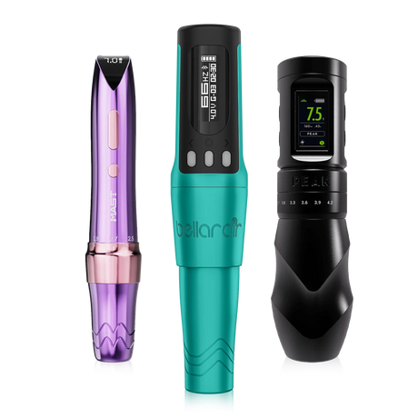 Sarai libero di muoverti utilizzando il nostro sistema wireless per macchine PMU. Questi strumenti semplici e flessibili permettono agli artisti di lavorare senza cavi. Questo rende l'esperienza del tatuaggio più piacevole e veloce. Batterie a lunga durata ti permettono di concentrarti costantemente sulla tua arte.