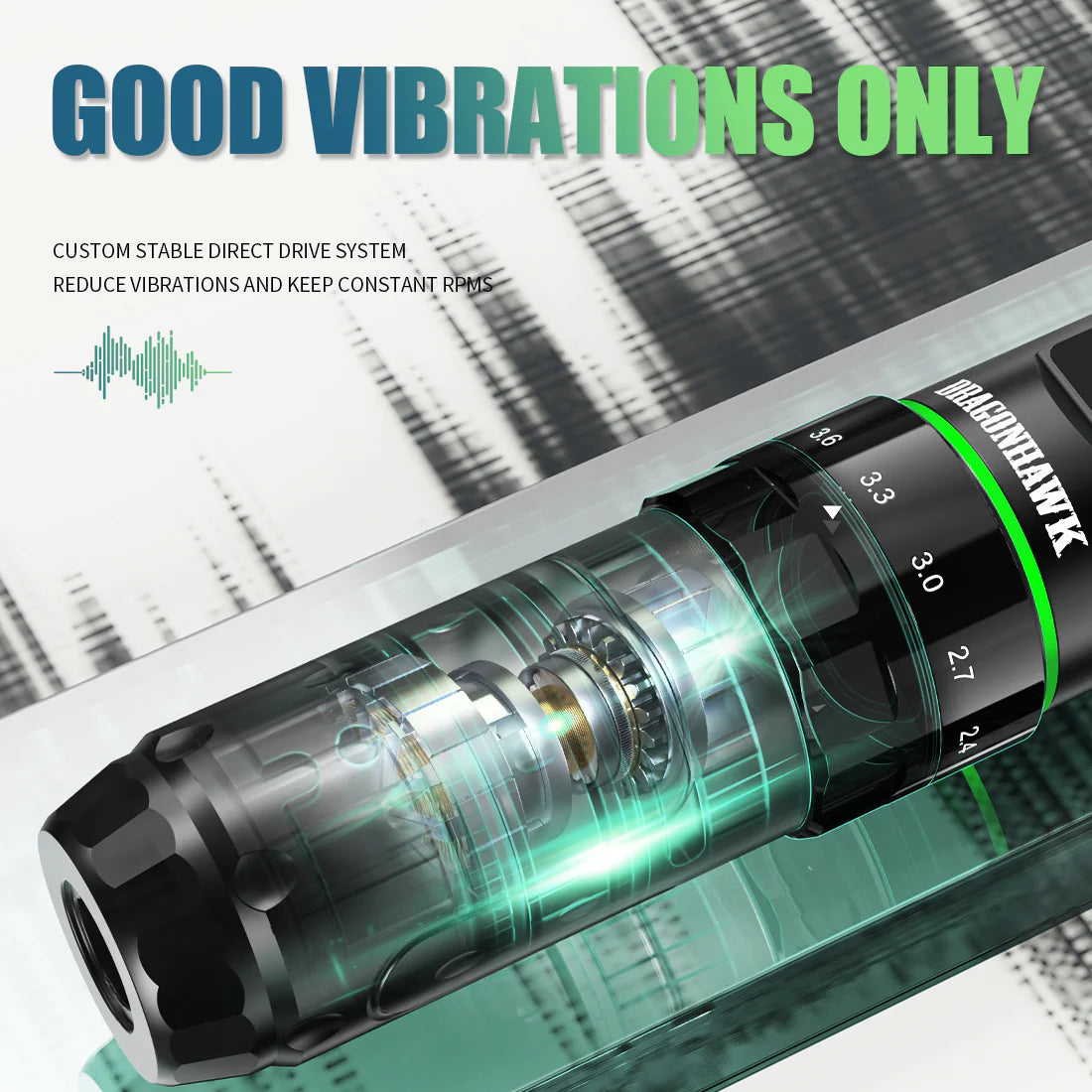 La Dragonhawk L3 Penna per Tatuaggi Wireless offre una vera adattabilità della corsa con 7 impostazioni reali di lunghezza della corsa da 2,4 mm a 4,2 mm, permettendo agli artisti di passare senza sforzo tra linee, sfumature, riempimenti e sfumature morbide. Un peso in acciaio integrato nell'impugnatura migliora l'equilibrio e la stabilità, offrendo agli artisti un maggiore controllo e una riduzione dell'affaticamento della mano durante le sessioni prolungate.