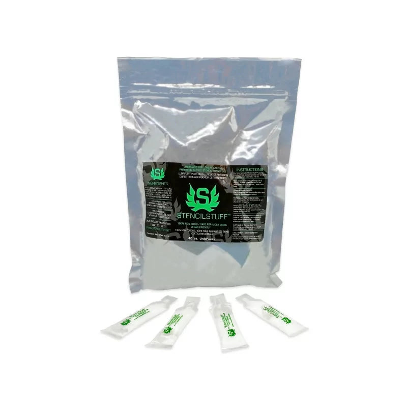 Dimentica la necessità di bloodlining o gray lining: Stencil Stuff mantiene fermo il tuo stencil, riducendo il rischio di sbavature e garantendo che la tua opera venga trasferita con precisione. È anche eccezionale per il contorno, offrendoti flessibilità e sicurezza in ogni sessione.
