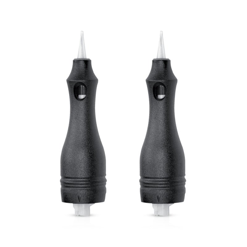 • Precisione e comfort: Disponibili in diverse configurazioni di aghi—1RL Nano (0,25mm), 1RL Micro (0,40mm), 3RL Outline (0,25mm) e 3RL (0,30mm)—offrendo un controllo eccezionale e un flusso di pigmento per risultati PMU dettagliati e impeccabili.
