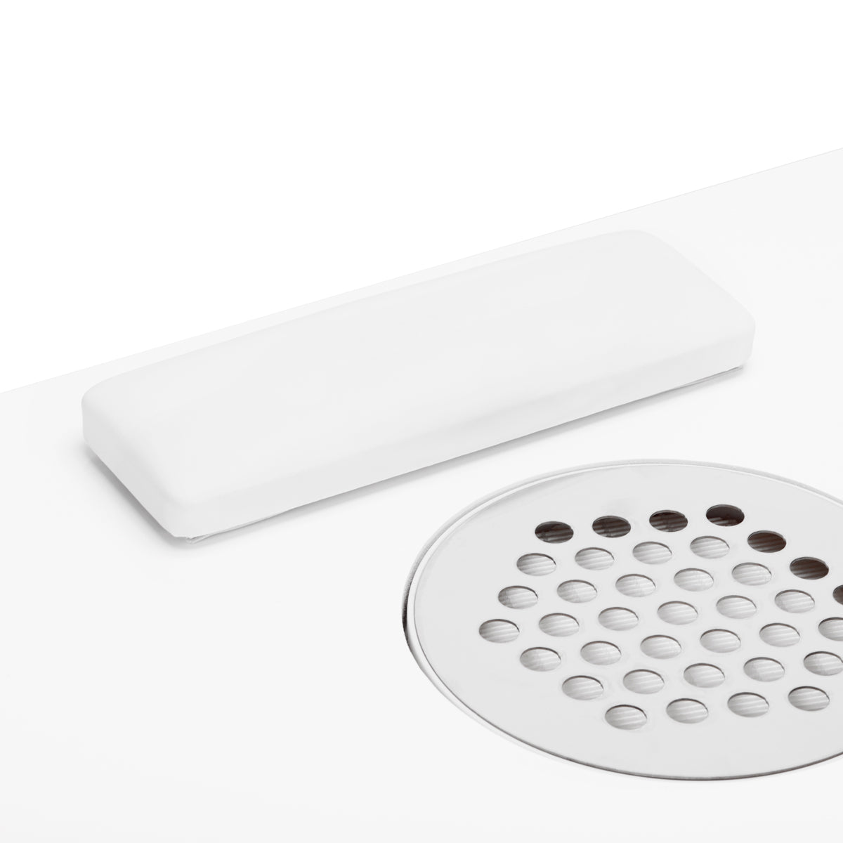L’innovativo aspirapolvere a cassetta integrato nel piano di lavoro migliora notevolmente il comfort e l’igiene durante il lavoro, rimuovendo efficacemente la polvere generata durante i trattamenti estetici, come la manicure. Grazie a questo dispositivo, l’aria nel salone rimane pulita e la postazione libera da impurità, aumentando la sicurezza sia per l’estetista che per i clienti. Il raccoglipolvere è facile da usare e da mantenere, il che ne accresce ulteriormente la funzionalità. È possibile acquistare una cartuccia filtro di ricambio per l’aspirapolvere (SKU 132085).