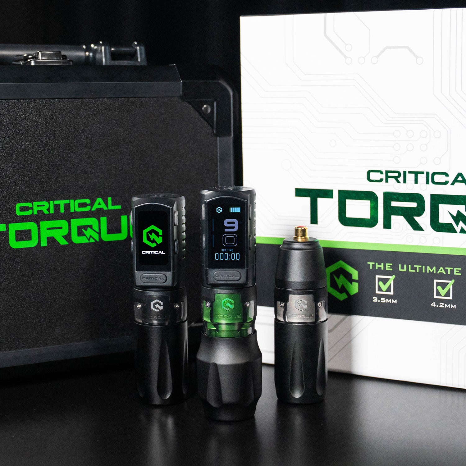 Critical Torque Wireless Tattoo Machine Ultimate Bundle 3.5 / 4.2 / 5.0 mm è un sistema professionale completo per tatuaggi progettato per massima versatilità, potenza e controllo. Con tre opzioni di corsa intercambiabili, questo set ti permette di adattarti facilmente a linee, sfumature e riempimenti senza cambiare macchina.