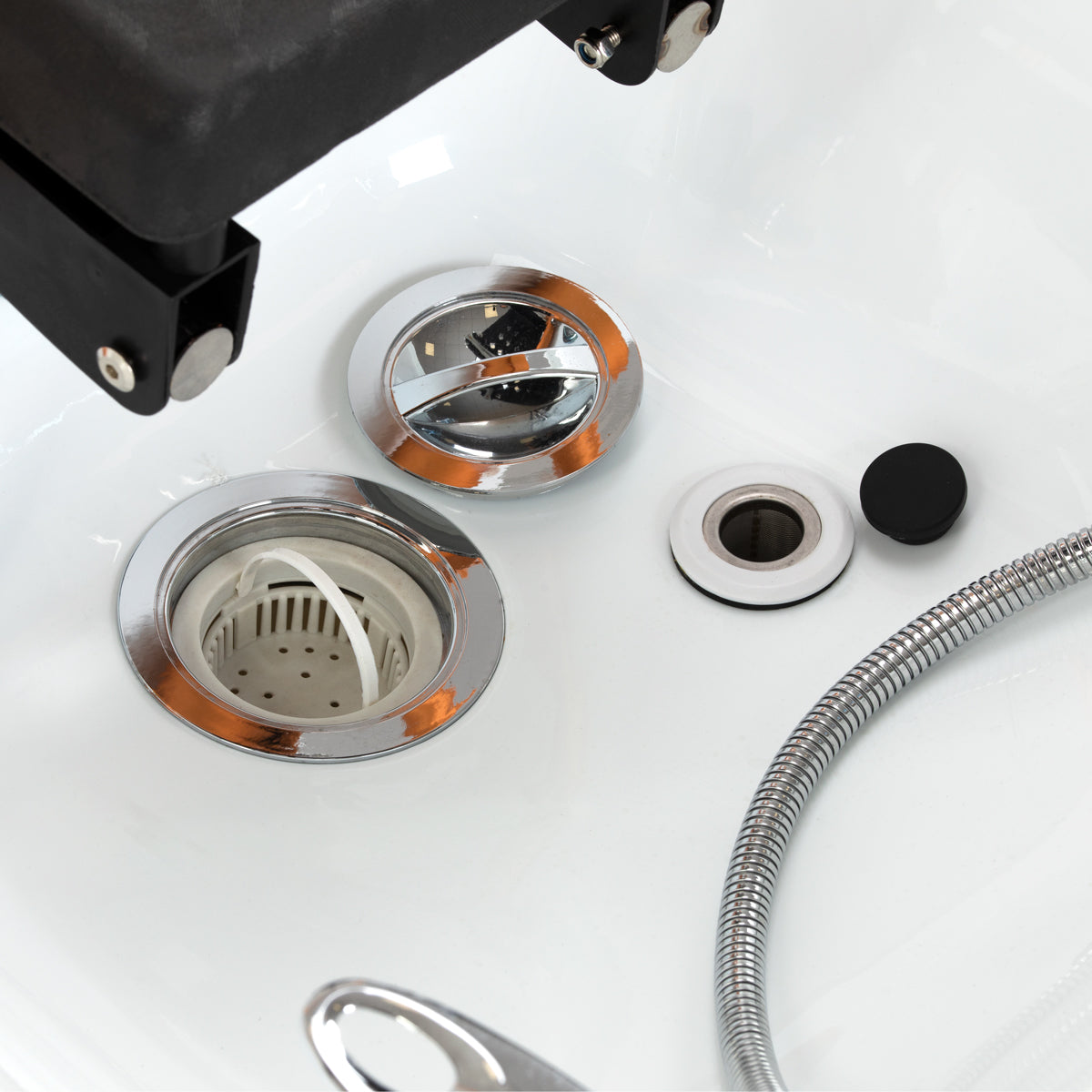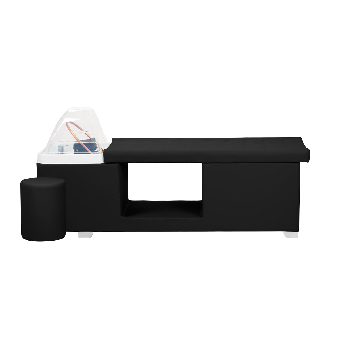L’unità lavaggio è dotata di un miscelatore, che permette una regolazione precisa della temperatura dell’acqua in base alle esigenze del cliente. Uno spazio dedicato per il doccino migliora l’efficienza, mentre un tappo cromato con apposito filtro assicura il controllo del flusso d’acqua e mantiene un alto livello di igiene. Il collegamento idrico si trova all’interno della base, dietro il rivestimento, nascosto con cura per un aspetto elegante dell’intera unità. Il lettino sagomato ergonomicamente garantisce comfort durante i vari trattamenti di bellezza. Un pratico pouf completa l’unità, aumentando il comfort del personale e migliorandone la funzionalità. Queste caratteristiche rendono l’unità lavaggio ideale sia per saloni di parrucchieri che per SPA.