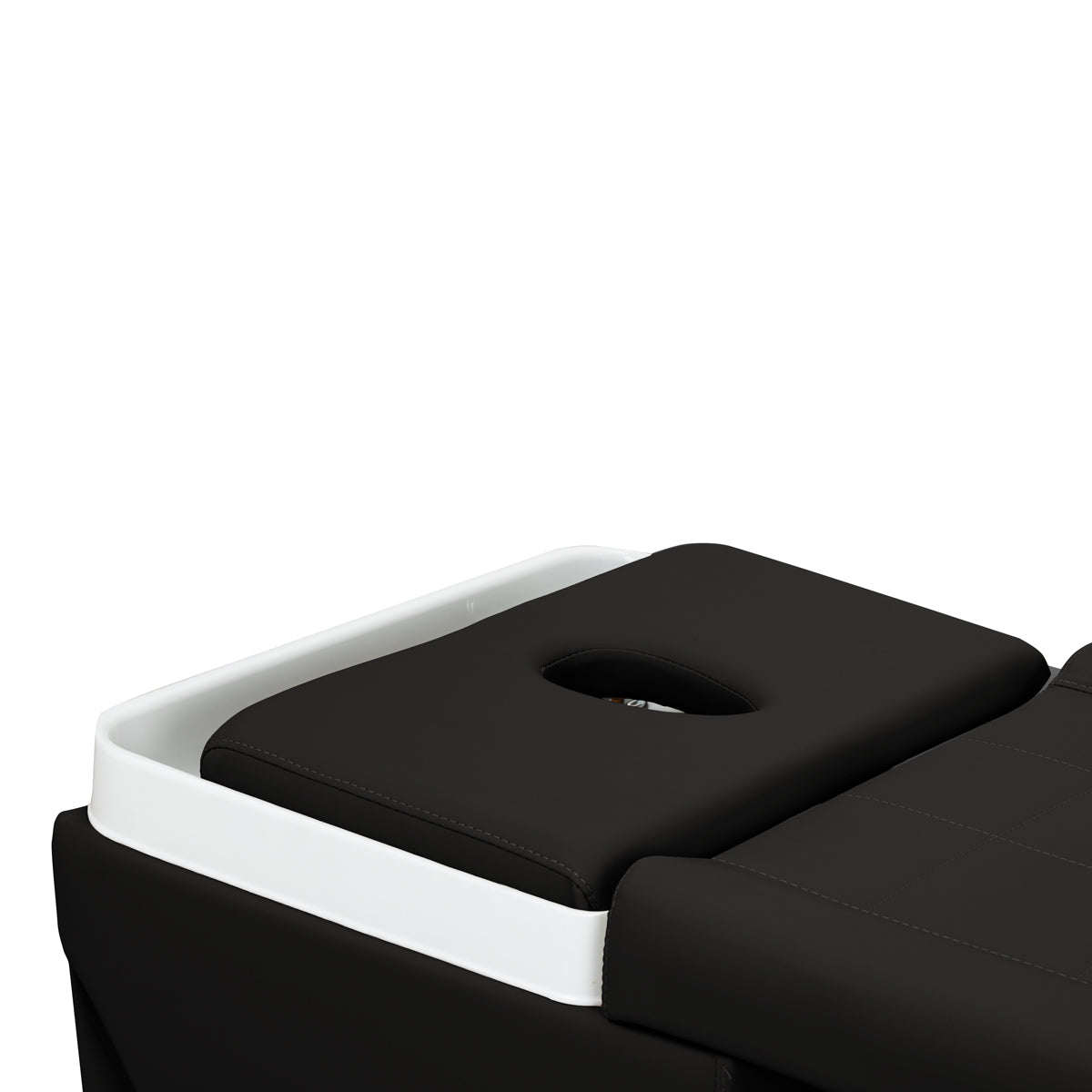 Il poggiatesta regolabile, con possibilità di estensione e variazione dell’angolo di inclinazione, consente un adattamento perfetto alle esigenze dell’utilizzatore, garantendo il massimo comfort. Il set include anche cuscini ergonomici, compreso un poggiatesta con apertura per il viso, che amplia la gamma di applicazioni – dai trattamenti del cuoio capelluto ai massaggi e a varie terapie per corpo e viso. Queste caratteristiche pratiche rendono il lettino un’attrezzatura versatile per saloni di bellezza e benessere, unendo il comfort del cliente alla funzionalità richiesta dal professionista.