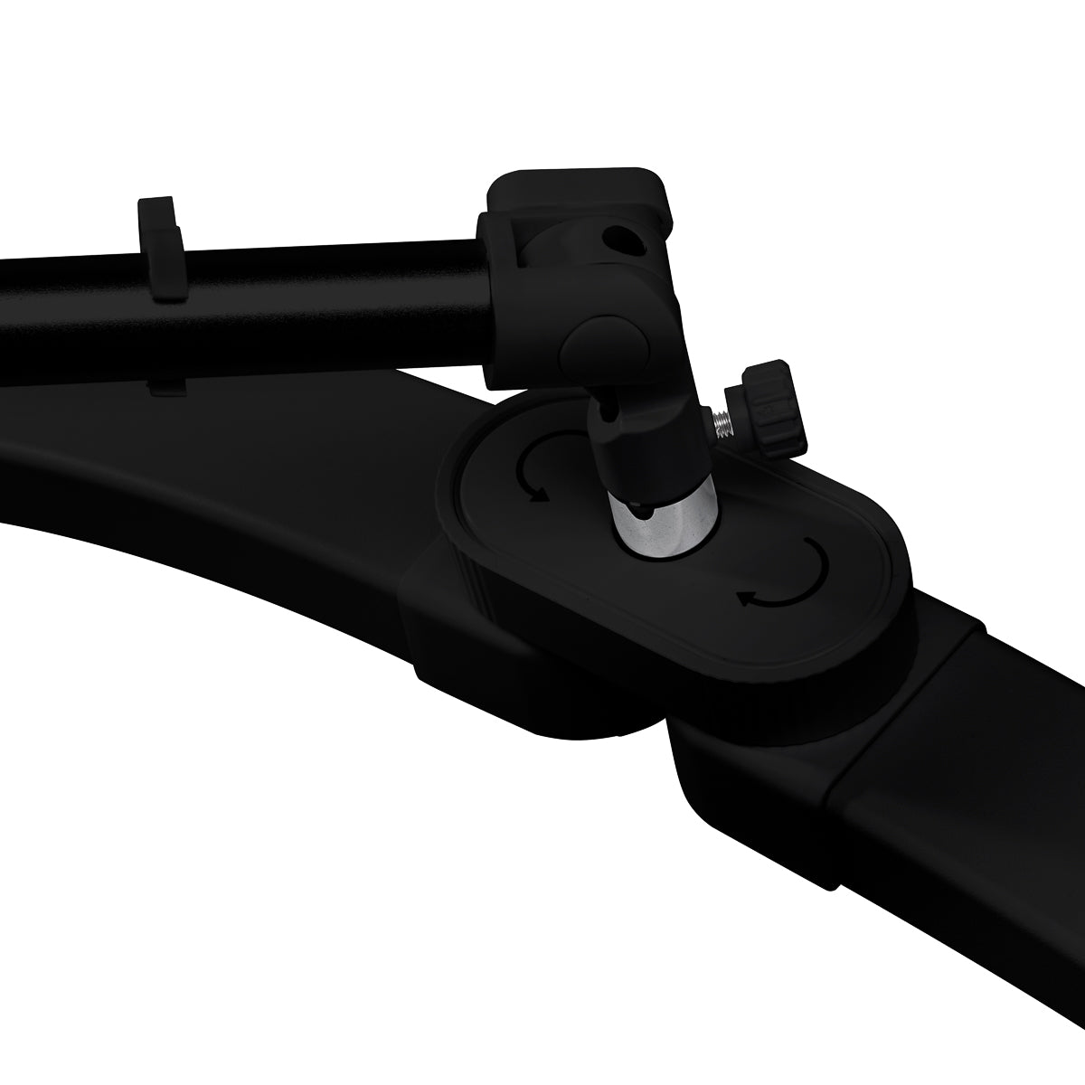 L'opzione di regolazione include tre livelli di temperatura del colore (3000-6000 K) e sette livelli di intensità luminosa, permettendo di adattare con precisione l'illuminazione alle esigenze individuali. La piena mobilità della testa e il braccio rotante del treppiede consentono di regolare con precisione la posizione della lampada. Tuttavia, la migliore stabilità si ottiene posizionandola lungo la base. Ulteriore stabilità è garantita da una cerniera bloccabile, che permette di regolare con precisione l'angolo della lampada.