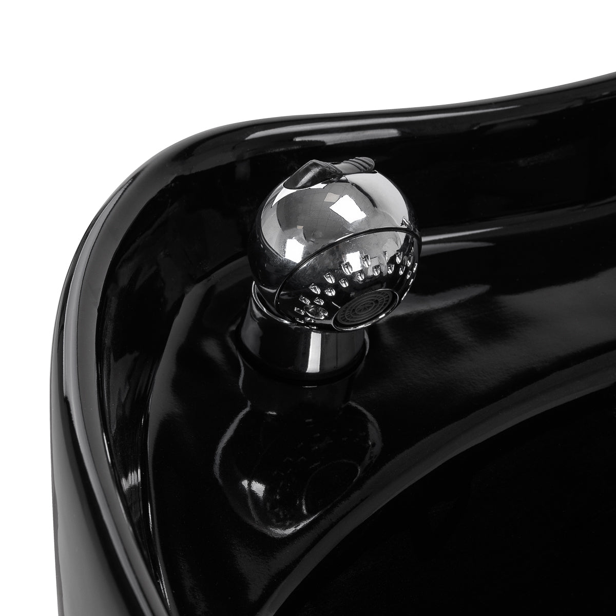 La profondità accuratamente selezionata della vasca in ceramica nera riduce gli schizzi di acqua e prodotti, il che si traduce in un’esecuzione comoda ed efficace di vari trattamenti. Il design mobile consente una regolazione precisa dell’angolo della vasca in base alle esigenze individuali dell’utente. La ceramica di alta qualità si distingue per la durata, la resistenza allo scolorimento e ai graffi, oltre che per la facilità di pulizia. Il colletto sagomato ergonomicamente offre un supporto stabile e comfort durante il lavaggio dei capelli, e la comoda copertura in plastica elimina la fastidiosa sensazione di freddo dalla superficie in ceramica.
