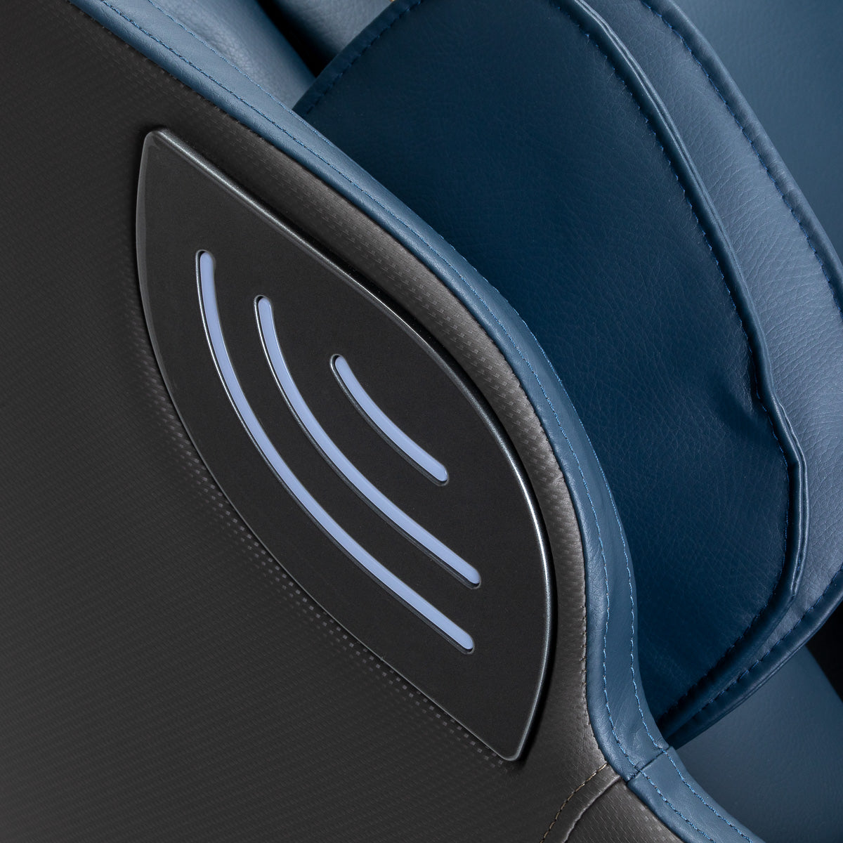 La sedia è dotata di un sistema di riscaldamento per schiena e polpacci che aiuta a rilassare i muscoli tesi, aumentando il piacere e l’efficacia del massaggio. La regolazione meccanica dell’estensione del poggiapiedi permette di adattare perfettamente la sedia all’altezza dell’utente, garantendo una posizione comoda ed ergonomica durante ogni sessione. Inoltre, il modello è stato arricchito con elementi laterali illuminati che gli conferiscono un carattere moderno ed elegante, creando un’atmosfera piacevole e rilassante e fungendo da elemento decorativo che valorizza l’arredamento.