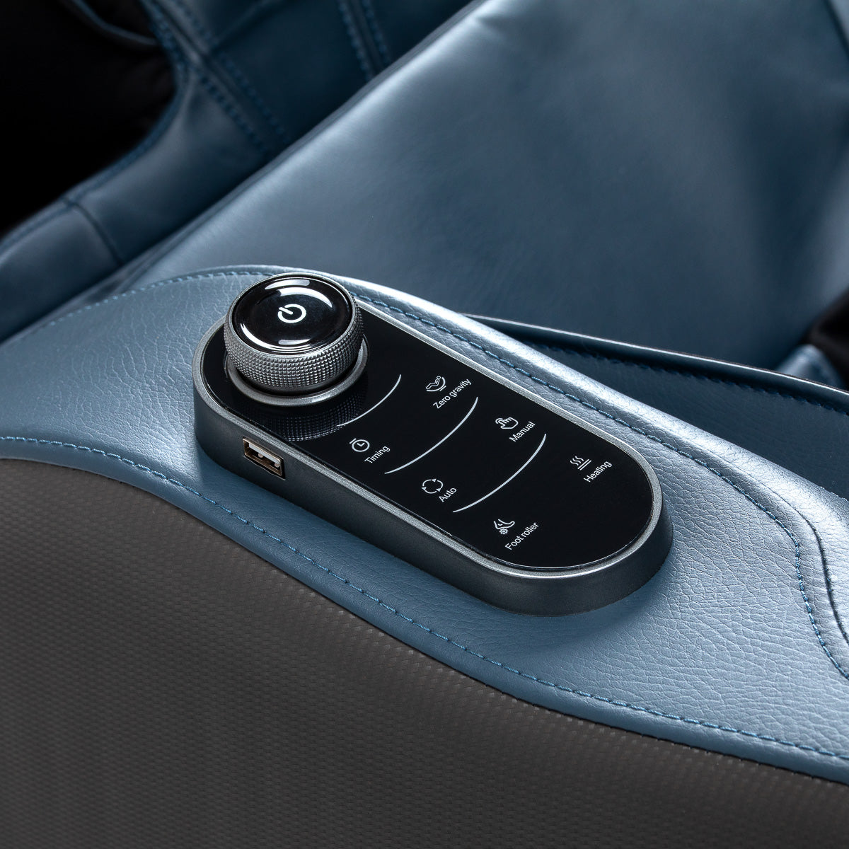 Per maggiore comodità, la poltrona è dotata di un set aggiuntivo di pulsanti di controllo posizionati sul bracciolo sinistro. Il pratico telecomando integrato offre accesso rapido alle funzioni più importanti senza dover raggiungere il pannello principale. Ciò consente all’utente di cambiare facilmente il tipo di massaggio, avviare il massaggio ai piedi, attivare la funzione riscaldante e la funzione Zero Gravity, permettendo il pieno controllo sul comfort e sull’intensità del rilassamento in qualsiasi momento.