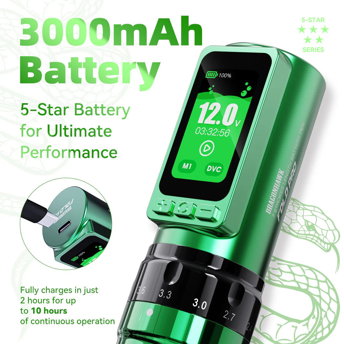 La Dragonhawk Fold Pro Edizione Anno del Serpente è alimentata dal avanzato motore Mcore-C3, che offre una potenza fluida e costante con eccezionale durata. Progettato per scorrere senza sforzo su tutti i tipi di pelle, inclusa quella più spessa, questo motore garantisce una penetrazione equilibrata dell'ago e una saturazione affidabile dell'inchiostro in ogni sessione.