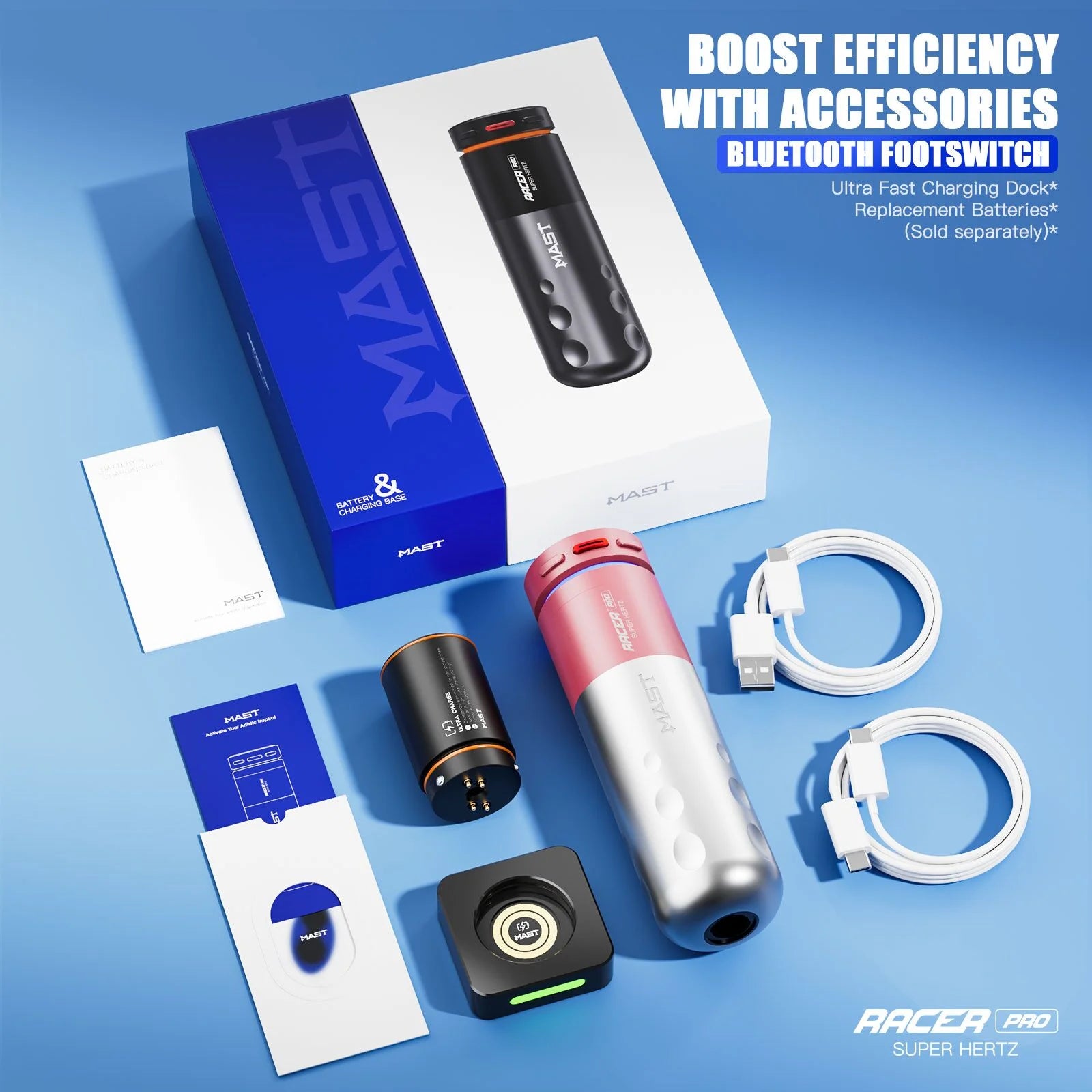 Aggiornata rispetto al Mast Racer originale, la versione Pro introduce il motore avanzato MCORE Pro, che offre prestazioni più fluide e una potenza perfettamente stabile per ogni stile di tatuaggio - dalla linea nitida e sottile alla saturazione di colore intensa. Il suo design intelligente integra la batteria direttamente nell’impugnatura, creando un equilibrio perfetto e riducendo l’affaticamento del polso durante lunghe ore di lavoro.