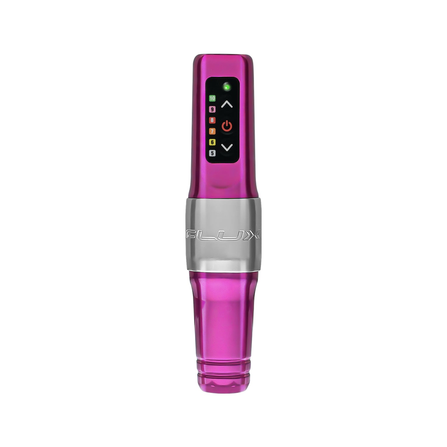 La Flux Mini è alimentata da un motore proprietario da 6 Watt, abbinato a un PowerBolt Mini batteria wireless intercambiabile. La batteria presenta controlli intuitivi e facili da usare, una connessione di ricarica USB-C e offre fino a 5 ore di autonomia, a seconda della tensione e della configurazione della cartuccia. Questo sistema snello offre prestazioni costanti con un setup minimo, rendendolo un'ottima scelta sia per artisti in studio che mobili.