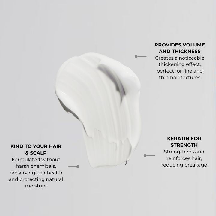 - Aggiunge volume e pienezza ai capelli fini o diradati