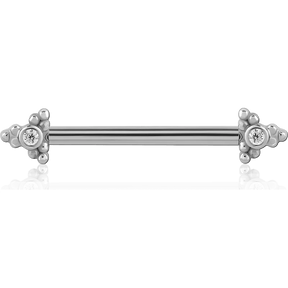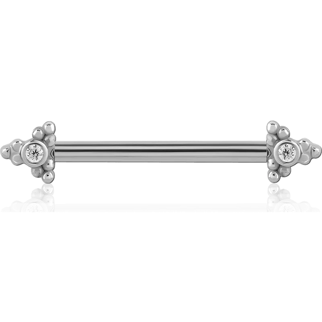 Una barra per piercing al capezzolo ispirata a una freccia audace, progettata per linee pulite, una lucentezza sottile del cristallo e uno stile di piercing moderno.