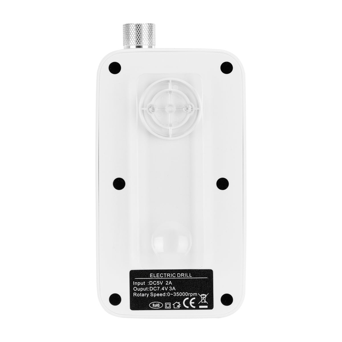 Il trapano per unghie è maneggevole e leggero, e il suo involucro minimalista in plastica nelle tonalità del bianco garantisce durabilità e facilità di pulizia del dispositivo. Grazie alle sue dimensioni compatte e al peso ridotto, il dispositivo può essere facilmente riposto in spazi piccoli e trasportato comodamente, cosa particolarmente importante per chi offre servizi mobili. Sul retro dell'involucro c'è una clip che permette di fissare comodamente il dispositivo alla cintura o in altro luogo. Inoltre, elementi antiscivolo sul fondo del dispositivo offrono maggiore stabilità durante l'uso.