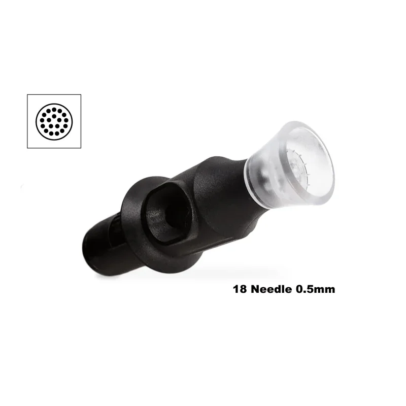 Progettate appositamente per un microneedling preciso ed efficace, queste cartucce sono ideali sia per il trucco permanente che per applicazioni cosmetiche avanzate. La versione Derma 6-Needling, disponibile con aghi da 0,5 mm e 1,0 mm, è perfetta per trattamenti mirati su linee sottili, rughe o aree sensibili, offrendo una penetrazione precisa e uniforme e adattabilità ai contorni della pelle. Per zone di trattamento più ampie, la cartuccia Derma 18-Needling, con un numero maggiore di aghi, favorisce una rigenerazione cutanea potenziata e un miglior assorbimento del prodotto, rendendola adatta per il ringiovanimento del viso e trattamenti anti-età.