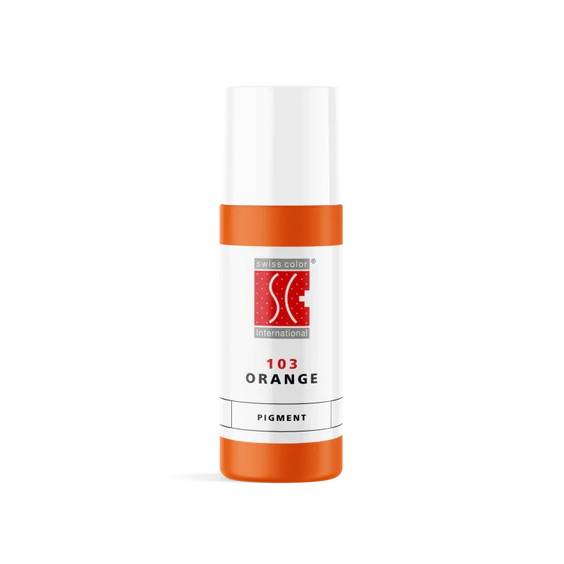 - 103 Arancione (5ml): Una tonalità calda perfetta per miscelare con pigmenti per labbra, sopracciglia e areola.